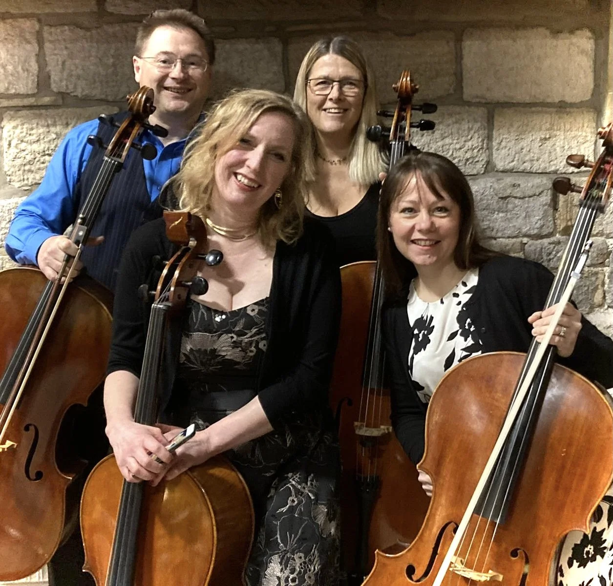 Celloship of the String is a cello ensemble based in Lancashire, U.K. The four core members of the collective are Bob Buller, Ilona Hepburn, Penny Holt and Margit van der Zwan. Each cellist brings a wealth of experience and diversity, which is reflected in their vibrant repertoire. Their professional work ranges from TV & radio appearances, teaching, charity recitals, orchestral playing, recording, busking and performing at music festivals with big names in the pop world. The group was founded in Clitheroe in 2022, with the fundamental ethos being to unite friendship and music. The quartet performs at private functions, and for concert societies including recitals at National Trust properties. The group’s performance repertoire ranges through the centuries, and often incorporates the players’ own arrangments and compositions for cello quartet.